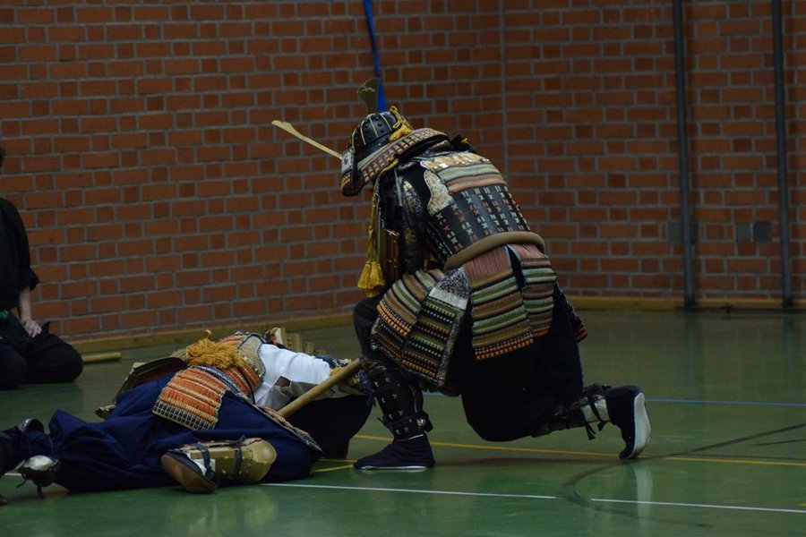 Besondere "Highlights" des Abends waren zum einen der Kampf in japanischer Rüstung (Yoroi) und die am Ende vorgeführten Schnitttests mit scharfen Klingen.